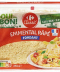 Carrefour Grated Emmental is ready to use straight from the pack. Sprinkle it over your hot dishes to create a beautifully melted cheese layer, or use it as a delicious topping to your cold salads. It's also an ideal ingredient for baking; whether it's in bread, quiches, or pies, this cheese will add a delightful French touch to your recipes.
