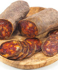 Savor the distinct taste of the Spanish countryside with Huber's Butchery Iberian Dry Cured Chorizo Cular, Sliced. This premium cold cut captures the essence of traditional Spanish chorizo, made from carefully selected Iberian pork, expertly dry-cured to intensify its flavors. The slices are thin and delicate, boasting a deep, ruby red color that promises a deliciously robust flavor. The end result is a chorizo rich in taste and aroma, with a perfect balance of smokiness and spiciness that is sure to enchant your palate.