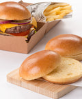 Suggested RecipesThe Buns&Burger - Plain can be used to prepare a classic beef burger, layered with juicy beef patties, fresh lettuce, sliced tomatoes, and topped with gruyere cheese. Alternatively, create a delightful ham and cheese sandwich, complemented with a crunchy salad on the side. For a vegetarian option, use our buns for a delicious veggie burger or a well-seasoned falafel wrap.