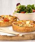 How to UseOur Mediterranean Quiche is best enjoyed warm. Simply reheat it in a 170-180 degree oven for 17-20 minutes. Serve it as an elegant entrée, a main dish, or as a stunning addition to your buffet spread. It's perfect on its own or with a side of salad for a light, wholesome meal.
