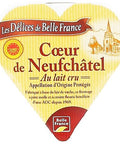 Dél. de Belle France Neufchâtel, French heart-shaped cheese, creamy Neufchâtel cheese, Neufchâtel cheese platter, raw milk cheese, Neufchâtel in recipes, lower fat cheese, protein-rich French cheese.