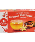 Experience the soothing essence of the Carrefour Vanilla Rooibos Infusion. This premium blend of 89% pure rooibos and natural vanilla flavors promises to whisk you away to a sensory haven of comfort and tranquility. Enriched with a 2% used vanilla pod, this infusion offers an exotic, sweet profile that enhances the earthy notes of rooibos, delivering a unique taste that is both refreshing and invigorating. Whether you need a stress-relieving break or a cozy nightcap, this rooibos infusion is a perfect choice to relax and rejuvenate.