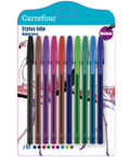 Add a vibrant touch to your note-taking or sketching with our Carrefour Pack Of 9 Ballpoint Pen in Assorted Colours. Designed for a smooth and consistent writing experience, these pens come with a medium (1mm) nib that ensures precision in every stroke. Each pack contains a beautiful array of hues, perfect for colour-coding your notes, adding flair to your doodles, or simply making your writing more expressive and fun. The sturdy caps protect the nibs when not in use, prolonging the life of your pens. Ideal for home, school, or office use, this pack ensures you always have a colourful pen at hand.