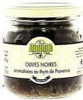 Experience the delectable blend of flavors with Olives Arnaud's Black Olives With Thyme. Imported straight from the heart of France, each jar contains a unique mix of succulent black olives, lovingly marinated in a flavorful blend of traditional Provençal herbs and spices, including the aromatic thyme de Provence. Infused in sunflower oil, the olives maintain their rich, juicy texture and vibrant taste, offering a delightful burst of Mediterranean savoriness. These nutrient-rich olives are not only a snack but a heart-healthy choice that is low in calories and high in fiber, making them an excellent addition to any balanced diet.