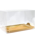 IngredientsA compact yet stylish clear cake case with gold tray insert, perfect for smaller cakes or layered desserts. Adds a premium touch to your baked creations. Size: 120x180x105mm.How to use:Insert tray, place cake, cover with lid. Ideal for elegant packaging or dessert tables.Suggested Recipes:Entremets, mousse cakes, Korean minimalist cakes.Ingredients:–Country of origin:–