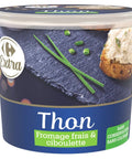 Carrefour's Tuna With Fresh Cheese & Chives is as versatile as it is delicious. It can be enjoyed straight from the jar, spread onto freshly toasted baguette slices as an appetizer, or used as a savory filling for sandwiches. For a delightful French-inspired entrée, serve it atop a bed of crisp, green salad.