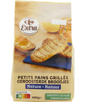 Experience a delightful crunch and a robust wheat flavor with every bite of Carrefour's Plain Toasted Breads. Expertly crafted in France, these toasted breads are made from 91% wheat flour, lightly sweetened with sugar, and toasted to perfection. These breads are not only delicious but also a healthier choice as they are free from palm oil and are made with rapeseed oil, known for its health benefits. With the added wholesomeness of wheat gluten and a hint of salt, these plain toasted breads are a versatile addition to any meal. Please note, they may contain traces of milk, eggs, sesame seeds, and soya.