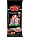 How to UseThis Red Label Auvergne PGI Curved Dry Sausage from Môssieur Polette is best enjoyed sliced thinly and served chilled. It can be an excellent addition to your charcuterie or cheese boards, or you can serve it as an appetizer with some French bread and your favorite red wine. It's also a great choice for a raclette dinner, providing a rich, meaty contrast to the melted cheese.