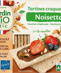Indulge in the rich, nutty delight of Jardin Bio's Crunchy Organic Hazelnut Toast Slices. Crafted with a blend of high-quality organic wheat flour and semi-complete durum wheat semolina, these toast slices give you the perfect crunch with every bite. They contain 10% deoiled roasted hazelnut powder and a touch of cane sugar, offering a delightful blend of sweet and savory flavors. These hazelnut toast slices are not only delicious but also nutritionally sound and are entirely free from artificial additives. Whether it's breakfast toast or a snack, these organic toast slices are a great choice for a healthy and tasty treat.