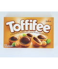 TOFFIFEE 12PC is a delightful treat that combines the distinct flavors of caramel, cream-filled nougat, and a whole hazelnut to create a unique and irresistible snack. Originating from Europe, this confectionery delight offers a rich taste that satisfies both your sweet and nutty cravings. Each box contains 12 pieces, making it perfect for sharing with friends or enjoying on your own.