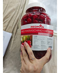 Our Redman Maraschino Cherries - Red 1GAL brings a burst of sweetness and vibrant color to your desserts and beverages. These cherries are sourced from top-quality orchards, then meticulously prepared and preserved with natural and artificial flavors, corn syrup, and citric acid. They are delightfully sweet, making them a perfect topping, decoration, or ingredient in cake recipes. The large 1-gallon size ensures you'll have enough to satisfy all your culinary needs.