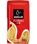 Plumas No. 6 Pasta from Gallo España brings a touch of authentic Spanish cuisine to your table. Crafted from high-quality durum wheat semolina, each piece promises a delightful al dente texture and robust flavor, perfect for any pasta dish. This dried pasta variety, known for its feather-like shape, will add an exotic flair to your meals while providing an indispensable source of complex carbohydrates for energy. Savor the Mediterranean essence with Gallo España's Plumas No. 6 Pasta, a delicious staple in any pantry.