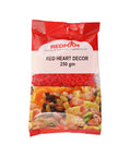 Our Decor Sprinkles are made in USA. This product is available in packets of 100g and 500g. It is available in the following designs - Hundreds and Thousands, Jingle blend, Jumbo heart, Gingerbread house, Mini red, Mini Red white & pink heart, Mocha beans, Moon & star, Red, Red white & blue star, Star & stripes, Snowflake, Twinquin festive, Candy cane peppermint, White & pink, Pumpkin shaped, Rainbow, Red & Green tree and Red hearts.