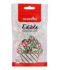 DECOR TWINQUIN FESTIVE FLURRY 100G is a delightful blend of vibrant, festive-shaped sprinkles perfect for any celebration or themed dessert. This American made product is crafted from high-quality ingredients including sugar, dextrose, corn starch, and a mix of vegetable oils. The fun shapes and colors are sure to brighten up your baked goods and bring a smile to anyone's face. The sprinkles also contain natural and artificial flavors, making them a tasty addition to your treats.