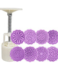 MOONCAKE HANDHELD PRESS MOULD 8 ROUND SWAPABLE INSERTS 50G