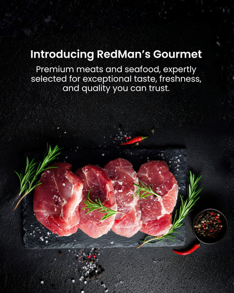 Discover premium meats and sustainably sourced seafood, selected for exceptional taste and freshness. Trusted by chefs and home cooks alike, RedMan Gourmet make it easy to cook with confidence and quality.