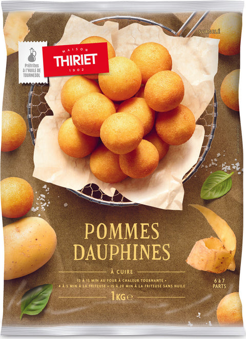 How to UseMaison Thiriet's Dauphine Potatoes are incredibly easy to prepare. Preheat your oven or fryer, spread the potatoes in a single layer on a baking tray, and cook until golden brown and crispy. For a healthier alternative, you can also use an air fryer. They make an excellent side dish for meat, fish, or poultry or can be enjoyed on their own with a dollop of your favorite dip.