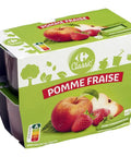 Indulge in the refreshing taste of Carrefour's Apple and Strawberry Compote, an exquisite blend of the finest fruits. This delightful dessert is made from 72.0% apple puree and 22% strawberry puree, sourced from concentrate, offering a unique combination of sweetness and tartness. Infused with a hint of blackcurrant juice and a touch of ascorbic acid for antioxidation, it is as good for your health as it is for your taste buds. The added sugar enhances the natural fruit flavors, making this compote a perfect dessert or snack for those craving a sweet indulgence.