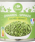 Introducing Carrefour's Chopped Spinach, a healthy and convenient addition to your pantry. Packed with essential nutrients, this premium quality spinach is harvested at the peak of freshness and immediately chopped and canned to preserve its natural taste and nutritional value. With just a hint of salt and water added, it's a low-calorie, low-fat, and high-fiber option that can add a nutritional boost to any meal. Encased in a lightweight, easy-to-open tin, our chopped spinach is perfect for those who value both health and convenience.