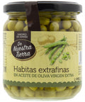 Savor the natural richness of De Nuestra Tierra's Young Beans in Extra Virgin Olive Oil. Each tin is packed with tiny, tender beans, steeped in high-quality Extra Virgin Olive Oil that brings out their subtle nuttiness while adding a luxurious velvety consistency. Our beans are picked at the peak of ripeness, ensuring their superior taste and quality. Enhanced with a dash of salt and antioxidant Ascorbic Acid, these beans offer a distinct, healthful side dish that's as palatable as it is nutritious.