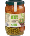 Enjoy the freshness and quality of our Carrefour Organic Garden Peas and Sliced Carrots. Sourced from certified organic farms, this mix of 32% carrots and 30% peas, is packed in water with a hint of sea salt. As a part of our Savoury Groceries range, these tinned veggies are a convenient addition to your pantry. Perfect for those who value nutritious, easy-to-prepare ingredients, these organic vegetables offer a tasty solution for quick meals without compromising on health and taste.
