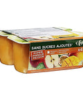 Relish the richness of two exotic fruits mixed in perfect harmony with Carrefour's Apple-Mango Compote without added sugars. This delightful blend of apple puree and mango puree makes for a delicious, healthy treat that can be enjoyed at any time of the day. The natural sweetness of apples and the tropical hint of mangoes are skillfully balanced with a splash of refreshing passion fruit juice. Made in France with carefully selected ingredients, this compote is free from preservatives, colourings, and added sugars, offering you a pure, guilt-free indulgence.