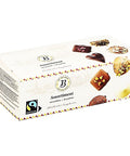 Delight your palate with Les Belges Assortment of Pralines - a luxuriously rich collection of Belgian specialties. In this lavish assortment, dark chocolate, milk chocolate, and white chocolate pralines harmoniously unite, each filled with a variety of gourmet fillings such as hazelnut, raspberry, and coffee. These pralines are made from Fairtrade certified ingredients, ensuring that every bite is not just delicious, but also ethically sourced. This mouth-watering assortment brings a touch of exotic taste to your celebrations with its premium blend of chocolates and confectionaries. The use of high-quality ingredients like cocoa mass, cane sugar, and whole milk powder adds depth to the flavor and delivers an unforgettable taste experience.