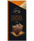 Indulge in the sublime combination of bitter and sweet with Carrefour's Dark Chocolate With Orange. This luxury chocolate bar, part of our premium selection, is crafted with a minimum of 64% cocoa for a rich, dark chocolate experience. The bitterness of the dark chocolate is beautifully balanced with the sweetness of candied orange peel, which makes up 12% of the bar for a tantalizing citrusy twist. The addition of natural vanilla flavor enhances the overall taste, while the orange essential oil adds a unique aroma that's both refreshing and inviting. The result is a tantalizing treat that's perfect for anyone with a sophisticated sweet tooth.