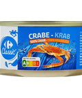 Indulge in the taste of the sea with Carrefour's 100% Crab Flesh. Harvested from the freshest catch, this product offers the delicate flavor of crab, enhanced with a hint of salt and sugar for a balanced taste. This canned delicacy is preserved in water with citric acid to maintain its freshness and sodium disulfite to ensure its longevity. High in protein and low in fat, it's a healthy choice for those who enjoy the exquisite taste of seafood.