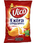 Indulge in the simple pleasure of a well-crafted snack with Vico's Extra Crispy Potato Chips. These chips, made with real potatoes, sunflower oil, and a touch of salt, offer a satisfying crunch that will leave you reaching for more. Carefully crafted in France, each chip is a testament to Vico's commitment to quality, delivering a flavourful experience every time. Please note, this product may contain traces of milk and mustard and is produced in a factory that uses peanuts.