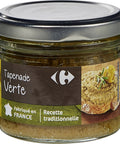 Indulge in the authentic taste of France with Carrefour's Green Tapenade. This gourmet spread is teeming with the rich flavors of green olives (73%) and enhanced by the subtle notes of capers and anchovy paste. Not just a treat for your taste buds, the spread is also a healthful choice, packed with heart-healthy extra virgin olive oil, and flavoured with an assortment of natural ingredients including garlic, concentrated lemon juice, thyme, bay leaf, rosemary, and black pepper. With its intriguing taste and wholesome ingredients, the Green Tapenade is sure to become your go-to addition for a variety of meals.