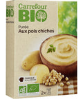 Delight in the unique and wholesome taste of Carrefour's Organic Chickpea Paste. This delectable paste is crafted with 57.6% organic potatoes and 37.5% organic chickpeas, providing a rich source of protein and fiber for your daily diet. Enhanced with organic vegetables like onions, tomatoes, and parsnips, and seasoned with sea salt, garlic, and turmeric, it offers a nutritious, flavorful boost to your meals. Plus, it's made with sunflower and rapeseed oil, which are known for their heart-healthy fats. As a bonus, it is certified organic and may contain traces of egg, milk, celery, soy, mustard, and gluten.