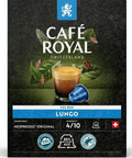 Start your day with a cup of Café Royal's Lungo Coffee Capsules - Intensity 4, a delightful blend of the finest 100% Arabica beans. This smooth, medium-intensity coffee offers a balanced flavor with subtle notes of fruit and spice, making it an exquisite choice for every palate. Whether you’re looking for a morning pick-me-up or an afternoon refresher, these coffee capsules promise to deliver a satisfying and refined coffee experience. With Café Royal, you're indulging in the taste of luxury, right in the comfort of your home.