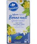 Indulge in a soothing ritual with Carrefour's Good Night Infusion. This specially curated blend of traditional herbs includes linden officinalis, verbena, and scentless chamomile - all known for their calming properties. The added notes of orange bigarade, lemon balm, and lavender not only enhance the flavor but also promote restful sleep. This all-natural herbal tea infusion is perfect for those who want to unwind at the end of a long day.