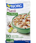 Indulge in a wholesome breakfast or an anytime snack with Bjorg's Organic Fruit Muesli. This delightful mix is composed of 50% oat flakes, 10% spelt flakes, 10% barley flakes, and a variety of fruits such as grapes, apples, and bananas. Every spoonful guarantees a balance of nutrition, flavor and texture, thanks to Bjorg's careful selection of organic ingredients. What's more, this product is a source of fibre and is free from artificial colors, flavors and preservatives, making it a healthy choice for the whole family.