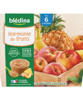 Delight your little one's palate with Blédina's Fruit Harmony Compote, specifically crafted to suit the nutritional needs of babies 8 months and older. Packed with the goodness of apples, peaches, bananas, and pineapple, this delicious compote provides a wholesome and appetizing meal option for your growing baby. Each serving is boosted with vitamin C, aiding in your child's immunity and development. The Blédina Fruit Harmony Compote is free from additives and preservatives, ensuring a healthy and natural meal for your child, every time.