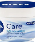 Reveal a brighter, softer, and smoother complexion with Nivea's Intense Nutrition Face And Body Cream. This luxurious cream is designed to provide intense hydration and nourishment, helping to restore the skin's natural balance and protect against environmental aggressors. Its fast-absorbing formula penetrates deep into the skin layers, ensuring optimal hydration without the greasy residue. Perfect for all skin types, it's your secret to a radiant, healthy-looking complexion and well-nourished body skin.