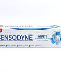 Keep your teeth in top form with Sensodyne's Multi-Protection Toothpaste, a must-have in your oral care regimen. Formulated with a blend of beneficial ingredients like aqua, sorbitol, hydrated silica, and glycerin, this toothpaste works to thoroughly clean your teeth while providing optimal hydration. The added sodium fluoride (1450 ppm F) is scientifically proven to prevent cavities and tooth decay, making this toothpaste an excellent choice for maintaining oral health. Additionally, the unique blend of potassium nitrate and zinc citrate provides extra protection against sensitivity and gum issues. With its delightful aroma, this toothpaste leaves your mouth feeling fresh and clean.