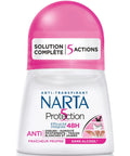 Protect your underarms from unwanted odours with the Narta Deodorant Roll-On. This powerful anti-odour solution works for a full 48 hours, ensuring you stay fresh and confident all day long, even during the most intense activities. The deodorant is a perfect blend of ingredients that are gentle on your skin, from aluminium chlorohydrate to combat excessive sweating, to a delightful fragrance mix that keeps you smelling great. This skin-friendly product, boasting a gentle yet effective formula, is ideal for all types of skin.