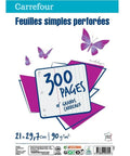 Here's the key to your organized writing - the Carrefour Pack of 300 Simple A4 Punched Sheets. A staple for students, teachers, and professionals alike, these sheets offer a clean and accessible solution to jotting notes, drafting plans, or sketching ideas. With seyès squared ruling and a weight of 90g, these sheets are designed for clarity and durability. This pack of 300 punched pages gives you ample space to express your thoughts and can easily be slotted into any binder or folder.