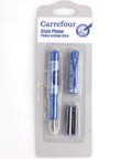 The Carrefour Blue Mini Fountain Pen is a chic and practical addition to your stationery collection. It boasts a steel pen tip that ensures resilient, fluent writing, making the pen ideal for everyday use. Whether you're jotting down quick notes or composing a thoughtful letter, this fountain pen provides a smooth, uninterrupted flow of erasable blue ink. It comes with two additional ink cartridges, ensuring you won't run out of ink anytime soon.