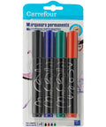 Introducing Carrefour's Pack of 4 Permanent Markers in assorted colours. These versatile and rich coloured markers are perfect for all your creative endeavours. Their large tips make for easy handling and ensure smooth and bold lines, perfect for accentuating your artwork or labelling your belongings. Suitable for use on every medium, from paper to plastic to glass, these markers are a must-have staple in your stationery drawer.