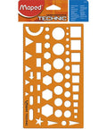 Introducing the Orange Stencil Normograph from the renowned brand, Maped. This essential stationery item is the perfect tool for creating precise geometry diagrams, shapes, and symbols. Its various shapes and sizes include squares, circles, diamonds, rectangles, arrows, triangles, ovals, stars, and semicircles. The Normograph is made of sturdy, shock-resistant plastic in a vibrant orange hue, ensuring durability and practicality for all your drawing needs. Ideal for students, engineers, architects, or anyone who loves to create detailed, precise drawings.