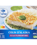 Discover the culinary delight of our Alaskan Pollock Florentine Style from Carrefour. Prepared with a generous 48% of succulent Alaskan Pollock (Theragra chalcogramma) combined with water spinach and complemented by a delightful blend of cheddar, cream, butter, and emmental. This dish oozes rich, creamy flavors. Each ingredient is carefully selected and combined to give you a true sensation of Florentine cuisine right in the comfort of your home. The wheat flour and modified starch provide a balanced texture, while the salt, natural pepper flavor, and plain caramel coloring add the perfect finishing touch to this frozen masterpiece.
