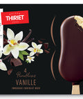 Indulge in the rich, velvety taste of Maison Thiriet's Dark Chocolate Coated Vanilla Ice Cream. This frozen delight is created from premium rehydrated skimmed milk powder sourced from the beautiful pastures of France, coupled with a luscious fresh cream that adds a layer of smoothness to every bite. The outer layer is coated in a generous helping of dark chocolate that beautifully complements the sweet, creamy vanilla heart. Made with natural Madagascar vanilla flavouring and extract, this treat promises an authentic dessert experience.