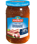 Savor the authentic taste of Rhubarb with a significantly less amount of sugar in Andros's Reduced Sugar Rhubarb Jam. Expertly crafted in France, each jar is filled with the tangy-sweet goodness of luscious rhubarb, lightly sweetened with sugar and set with natural fruit pectin. This reduced-sugar variant of your favorite jam retains all the delightful tastes of traditional rhubarb jam but with a healthier twist. It's a perfect choice for the health-conscious and those who prefer their spreads with a slightly less sweet taste.