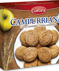 Indulge in the authentic taste of Spain with Cuétara's Galletas Campurrianas, or Campurrian Cookies. These delightfully sweet cookies are crafted from quality ingredients including wheat flour, sugar, and a touch of palm oil, providing a satisfying crunch with every bite. The subtle sweetness of these cookies is complemented by a hint of salt, creating a perfect balance of flavors. What's more, they're emulsified with E 471 and raised with ammonium and sodium carbonates, giving them a uniquely light and airy texture. Please note, these delicious cookies may contain traces of nuts, milk, and soy.