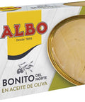 Dive into the rich, savory world of Albo's Bonito del Norte en aceite oliva, or White Tuna in Olive Oil. Caught in the clear waters off the northern coast of Spain and expertly packed in high-quality olive oil, this white tuna is a testament to the exceptional culinary heritage of Spain. The oil keeps the fish succulent and flavorful, while the hint of salt accentuates the natural sweetness of the tuna. This is a prime pantry staple for every seafood lover, perfect for adding a luxurious touch to everyday dishes.