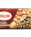 Indulge in the rich, delectable taste of Valor's Pure Chocolate Bar With Mediterranean Almonds. Immerse yourself in a world of sweet and savory, characterized by the delicate pairing of premium dark chocolate and the crunchiness of Mediterranean almonds. This gourmet chocolate bar is made from high-quality ingredients, ensuring a velvety smooth texture and superb taste. Infused with a 52% minimum cocoa content, it is then generously filled with 25% almonds, offering an exquisite balance between sweetness and nuttiness. A perfect treat for those seeking a luxurious twist to their regular chocolate bars!