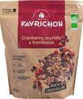 Indulge in the goodness of nature with Favrichon's Organic Cranberry Blueberry And Raspberry Muesli. Made with 60.8% whole grain cereals including oatmeal, rice, wheat flour, and wheat flakes, this Muesli is a powerhouse of nutrition and flavor. Added to this wholesome mix are 17% organic fruits comprising grapes, cranberries, raspberries, and blueberries. Sweetened with whole cane sugar and interspersed with sunflower seeds, this Muesli is a delightful blend of health and taste. Whether you're a fitness enthusiast, or simply someone who enjoys a hearty breakfast, this product will satiate your senses and fulfill your dietary needs.